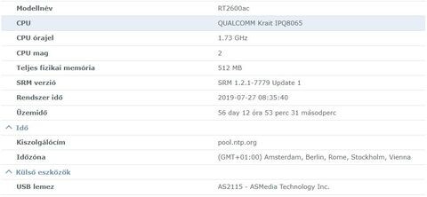 4. Optimális körülmények között olyan 18-20 MB/s a max le vagy feltöltési sebesség, ennél nem nagyon tud többet a hardver. Itt is érdemes lehet a gyári Transmission használata, megfelelően bekonfigurálva, plusz SWAP fájl.A Synology CMS az új firmware-rel jött be, gyanítom, hogy köze van a Mesh hálózat kezeléséhez.