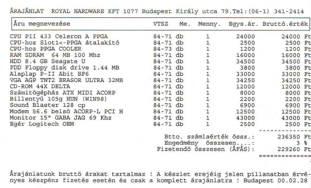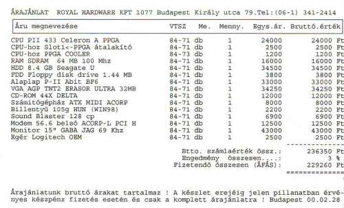 A gépünk 98-ban lett véve Abit BE6-tal, 13GB-os Seagate Medalist-tel, és egy SB Live!-al.