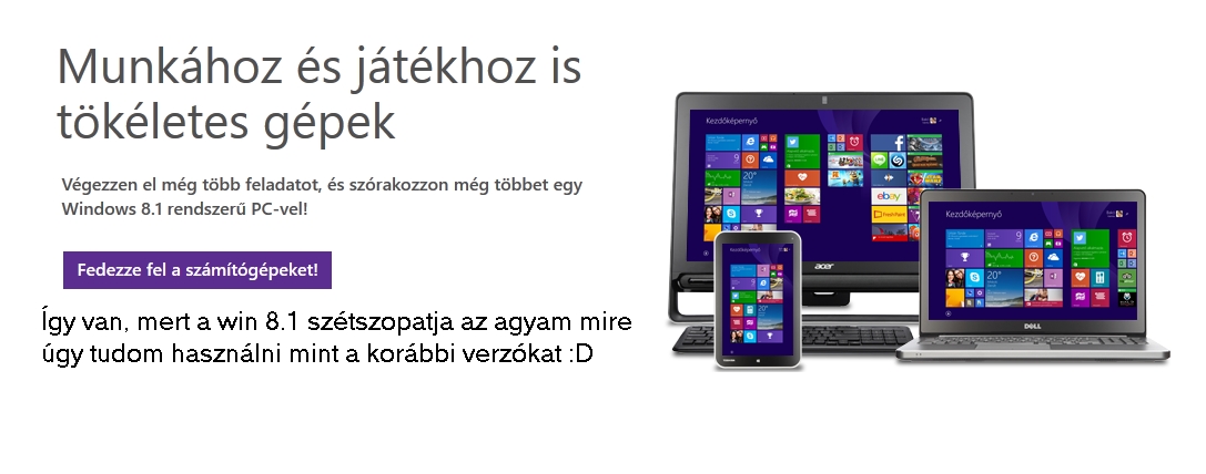 Szóval sokal több tudás kell egy win8.1 hez mint egy win7 hez, ha már sok sok éven keresztül a startmenüs rendszert sulykolták belénk.