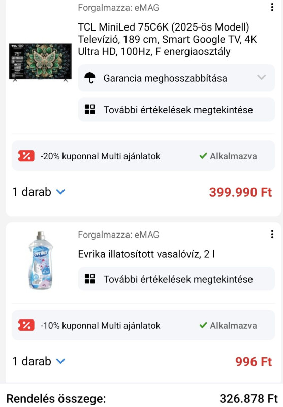320e a 75C6K eMag multi ajánlatok,a 65C7K is -20% az 55C6K pedig 176e.
