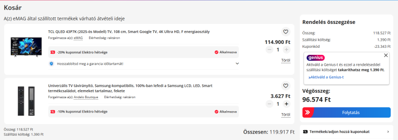 Most a TCL 43P7K lekuponozható 92 ezer Ft-ra Emagon. Ez most a leg megérősebb ajánlat ilyen méretben szerintetek? Jobb mint a többi tv hasonló áron? -