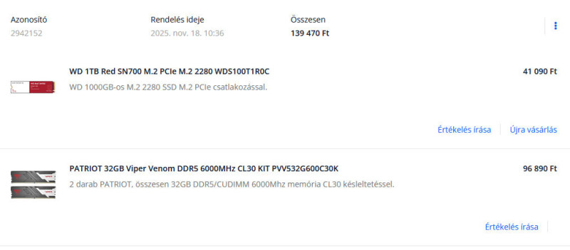 Szinte mindent megvettem akkor, amit akartam. Ezt a 32gb DDR5-t sajnálom csak, hogy nem, mert akkor most építhetnék AM5 konfigot is, de ez a hajó most már elment hosszú időre. Nem érdemes egyszerűen. Jó lesz nekem is meg a srácnak is az AM4. Szerintem a következő gépépítésem már csak a 30-as évek elején lesz. Addig max GPU csere, meg a procit én is lecserélem 5700x-re. -