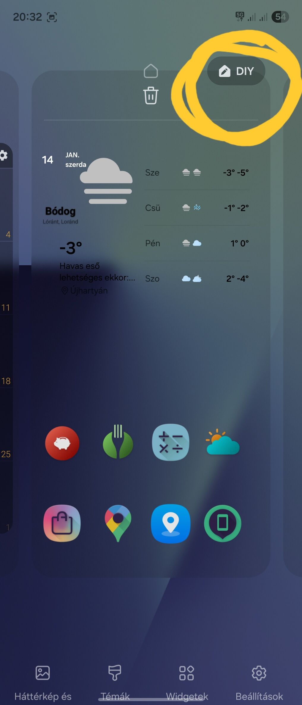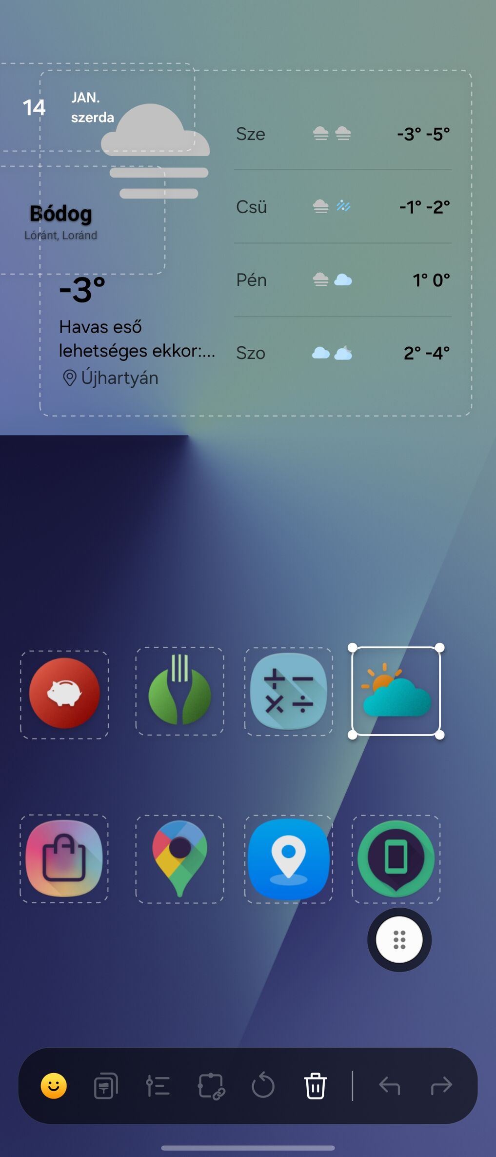 Öszeraktam egy LG widgettet.Az elképzelés az jó volt, de a megvalósításkor jöttem rá hogy a lenti előrejelzés ikonjait nehézkes lesz felísmerni.