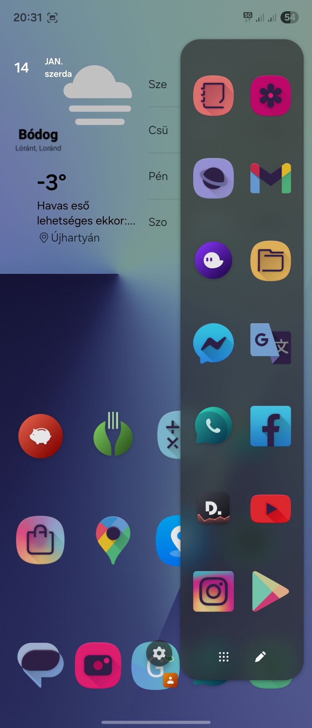 Én anno az S21-nél telibe mappáztam az Edgepanelt, így maraddt öt ikonom a dokk-on. Mondjuk akkor is nova-t használtam. Most Pixel-nél nincs Edge panel, de megoldottam a Nova-val hogy a Dokk 1-es és 3-as laspjára mappáztam a fontosabb app-ok ikonkait tematikusan, a 2-est meg beállítottam alapértelmezetnek. Így van egy egy lapos home-om 3 dokk lappal.