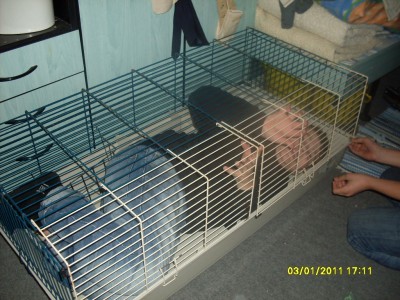 Nekünk ketrecbe vannak, aminek műanyag tálca az alja. Ruha van alattuk nálunk meg a sarkokban van macskaalom és azon faforgács hogy felszívja a vizeletet. -