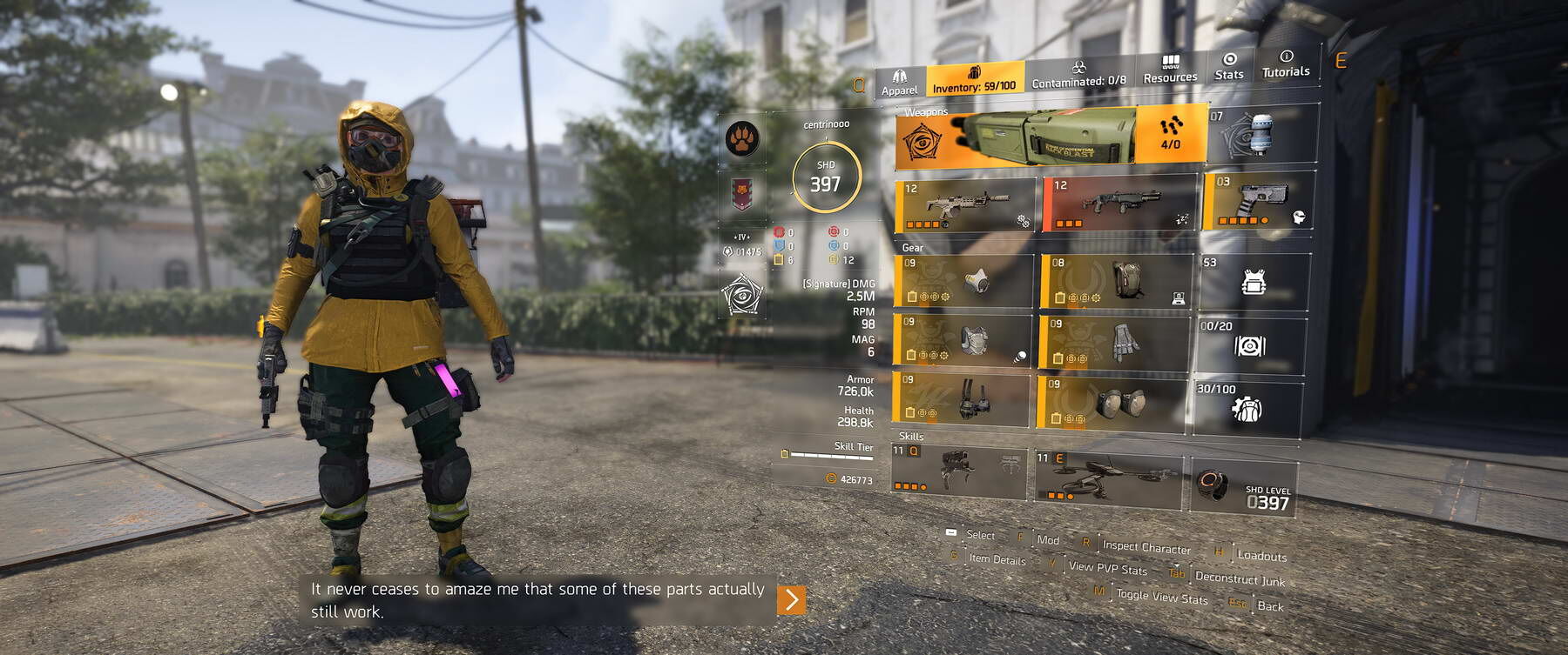 Pestilence Build-en tekertem kicsit, hogy még jobban bírja a direktivákat, strapát (armor regen és elite protection) és a "közelharcot" (godroll Preservation "The Mop").Azzal a céllal mentem, hogy kell egy 15% Weapon Damage Walker Harris mellény, Braced talenttel. 10. szint boss dobta ki. Egyéb loot felejtős minőségű, semmi más használható nem volt, Walkerből jött két item ami ugyancsak 15%WD, de egyéb statjaik felejtősök... Dobott Egy Chainkillert is, de vacak statokkal.