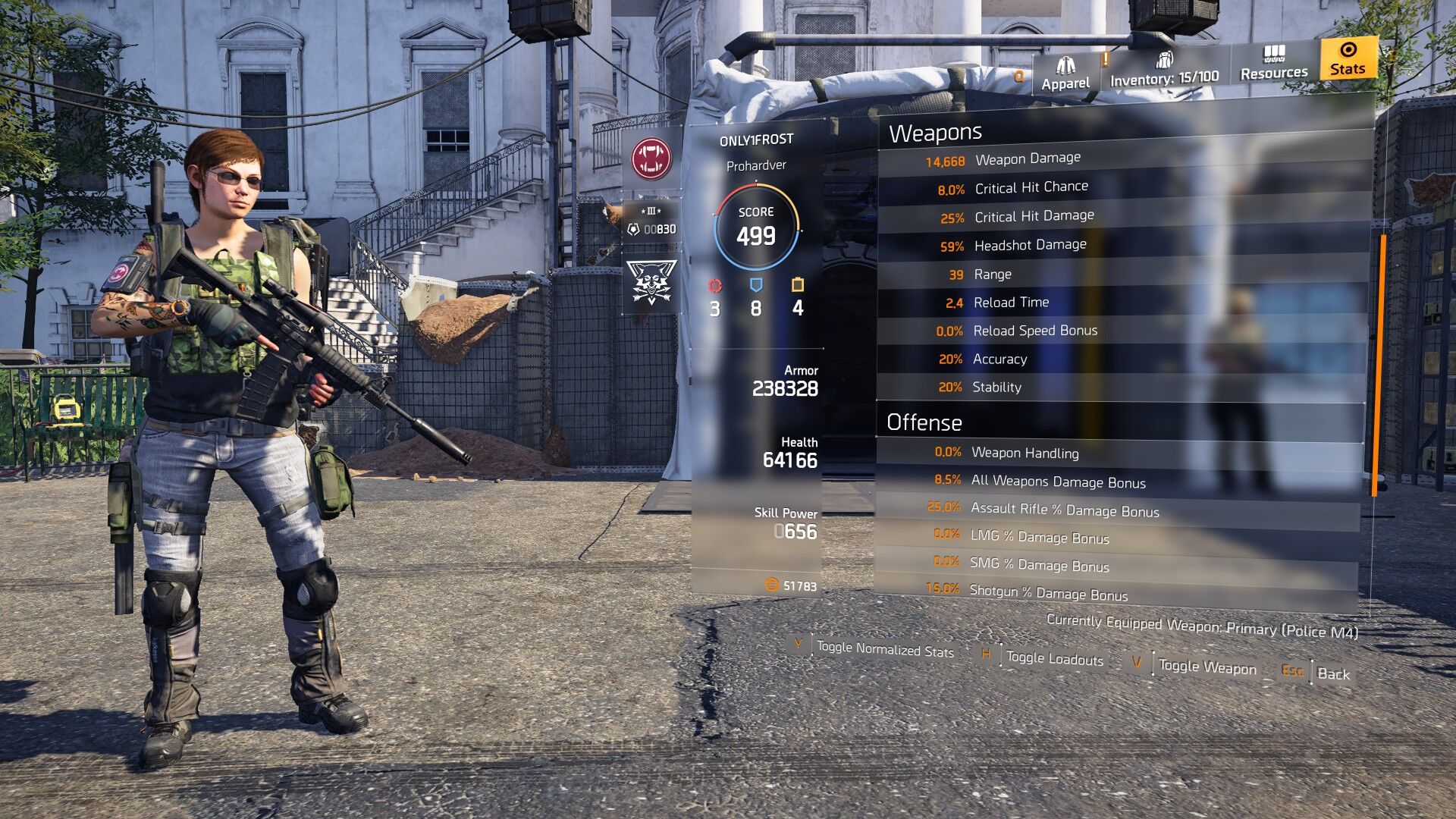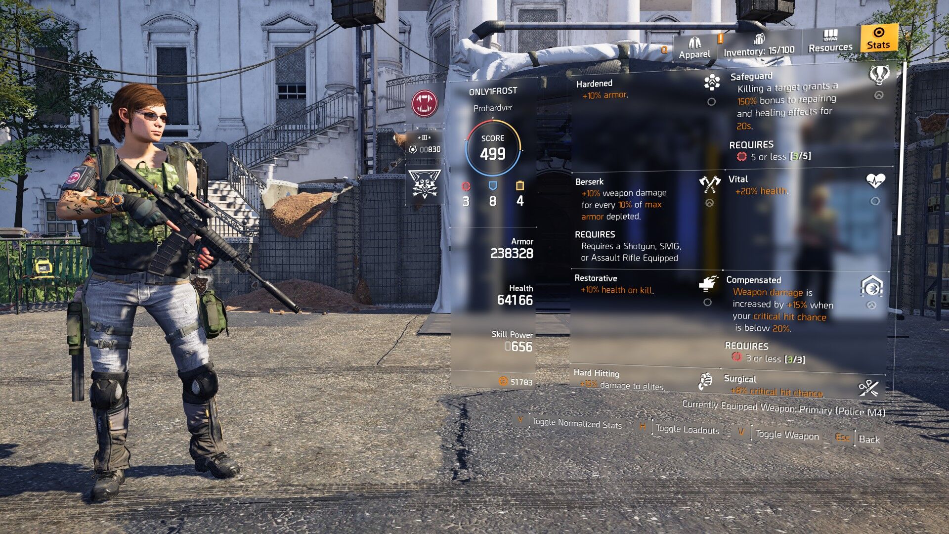 sikerult felig meddig osszeraknom egy Unstoppable Force/Compensated/Safeguard/Patience geart, szar maskkal (keves elite dmg), egy hard hitting/hardened hianyzik, 270k armor/48k hp, P416 Optimist/Allegro, es nagyon beteg