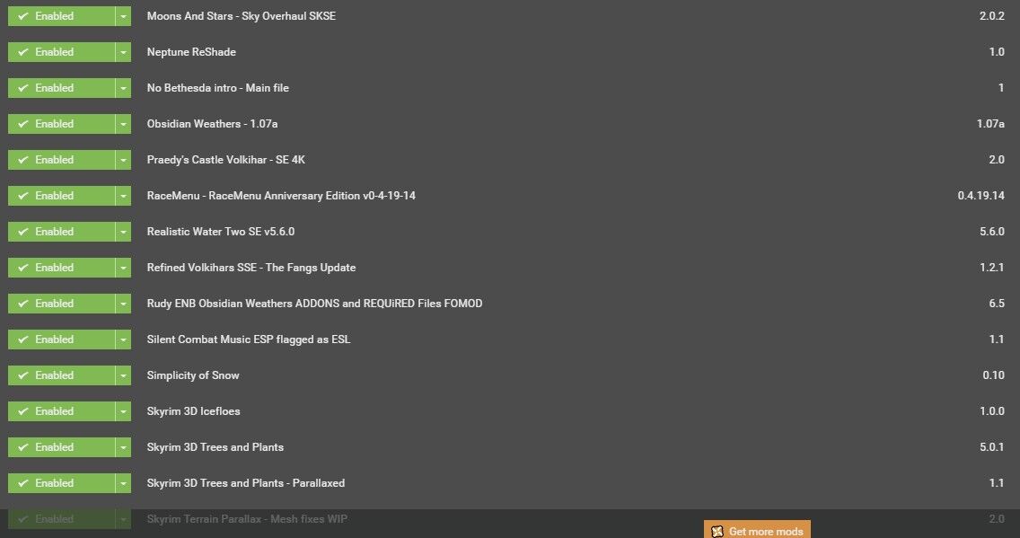 Elkezdtem újra modokat felpakolni, totál 0-ról. Most hagytam az ENB-t és a Reshade-t és kizárólag a community shadert használtam, még csak pár PRB textúra pakkot raktam fel de már most eléggé látványos az egész. Azt nem tudom hogy parallaxgennél be kell-e kapcsolni a complex materialt vagy az csak akkor kell ha ENB-t akarok használni?