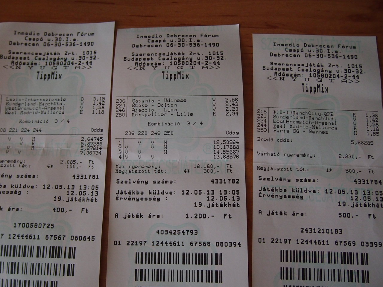 Megjátszott tét: 4x 100,- Ft