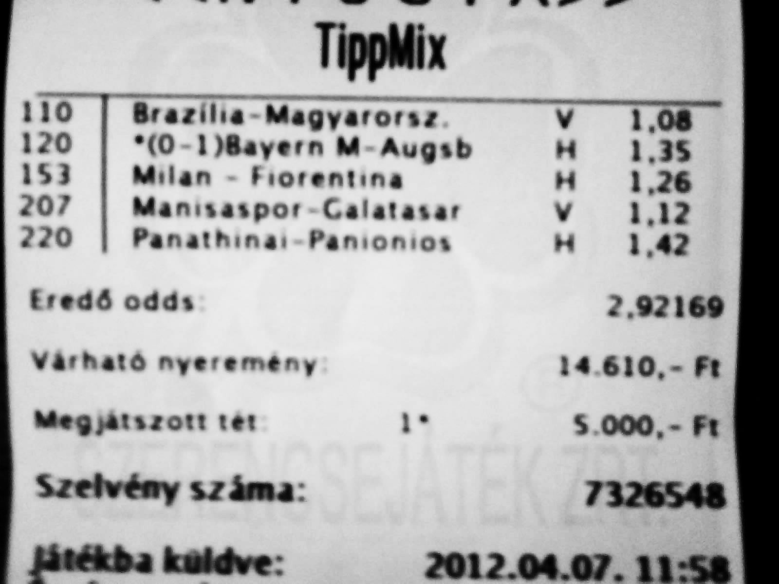 Igen hallottam már róla köszönöm, ahogy látom ebben a szelódban is benne van a Man Utd- QPR namost ezt naaagyon naaagyon sok ember beleteszi (nekem is van most egy amiben benne van , nomeg kettő olyanban is benne volt ami elment az egyik kami a másik stabil 5k-s volt , persze a milan fior.-on ment el...) elég az hozzá hogy ez az mu anniyira sok szelóban benne van h szivesen utánanéznék és ha megerősödik bennem az h kell az munak a pont, márpedsig ha jóltudom nemsokkal 1. , szóval szó ami szó ha a statisztika is megerősítené én erre szívesen feltennék olyan 200k-t menyit nyernék vele? nézzük tiszta haszon: 32.000Ft megérte? kiderül
