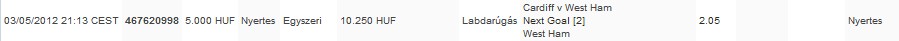 01/04/2012 12:03 CEST 4xxxxxxxx HUF Nyitott Egyszeri (5000 HUF) Labdarúgás