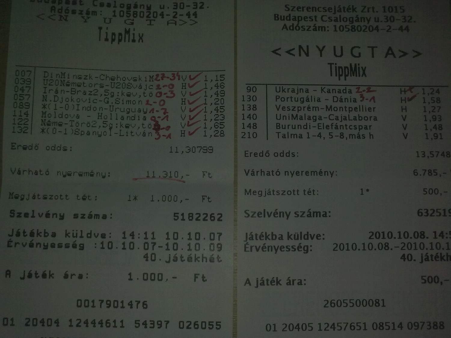 na ma is nyertem, 5/4 jött, ha magamra hallgatok most 5/5 lenne és 8k nyeremény, így csak 1700ft, sebaj, jó ez