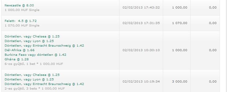 Grat!!! De a Newcastlere hol kaptal 8as szorzót???