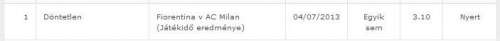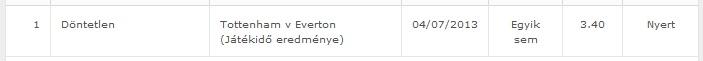Félidőben ezért még 2,60-ért megcsíptem az X-et, így haszonban jöttem ki ebből a szelóból is, de sajnálom, hogy nem előtte 4,50-ért... -