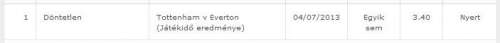 7/4 bejött, majdnem 4-es odds = dupla pénz
