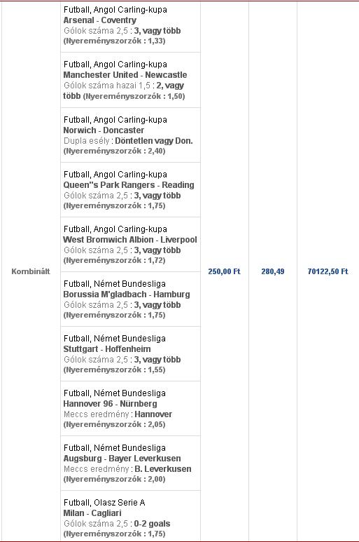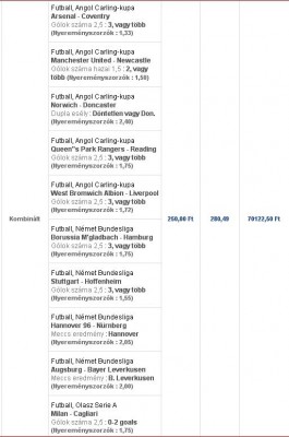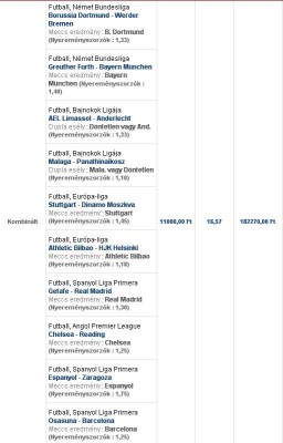 Már a f@szom kivan.... Vízilabdára a büdös életbe többet nem rakok, tegnap az olaszok, ma az amcsik döntetleneztek, és persze hogy a legkisebb odds, és persze hogy a 2-es odds-ok mind jöttek, és ez meg nem... Annyira tudtam hogy a BATE 1.fi. X-et kellett volna rakni nagy pénzel, nem ezt...
