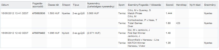 pohár, expander: köszi szépen a segítséget, szerintem ha még holnapig nem válzotik vagy az oddsok nem változnak nagyot akkor marad ez a felállás, vagy szétnézek más sportágban is, de most inkább a teniszt preferálom.