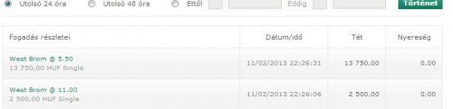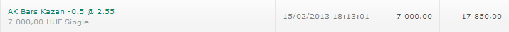 2 500,00 HUF Single 09/02/2013 21:52:10 2 500,00 0,00Sevilla @ 8.00