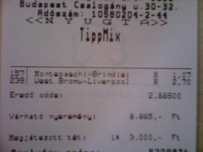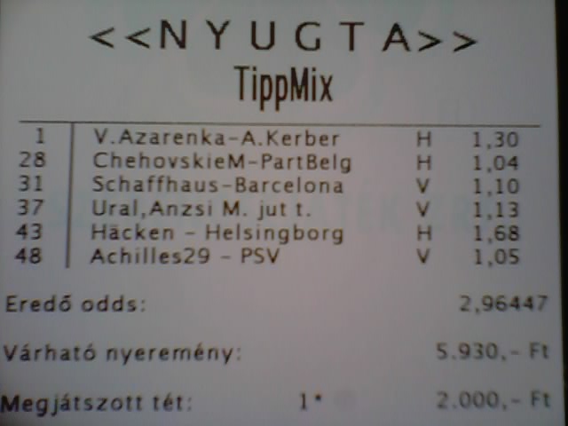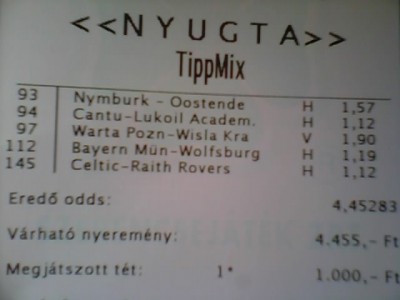 hacken... Na akkor ennyit a tippmixről egyenlőre, majd neten.