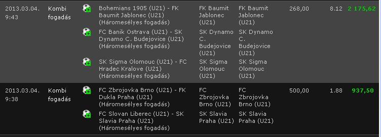 Pedig szép lett volna az estém!Bwinen nem találom azt a rohadt Cseh Youth Ligát, pedig lehetne vele keresni!