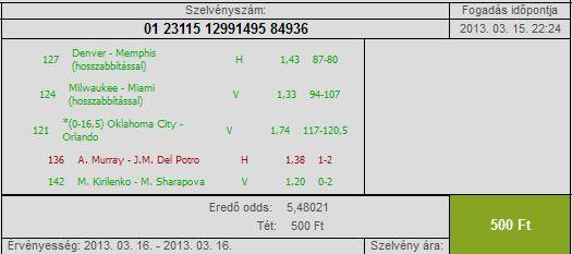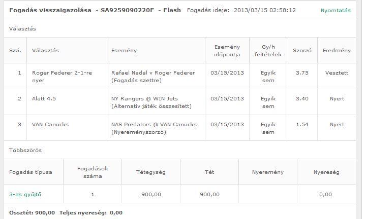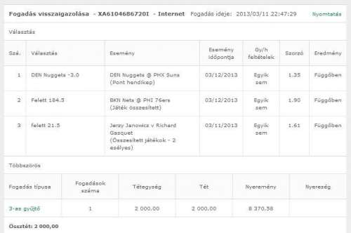 Várható nyeremény: 17385 FtNa erre megy egy visszafogadás biztos ami biztos alapon, ez már kellően nagy összeg.