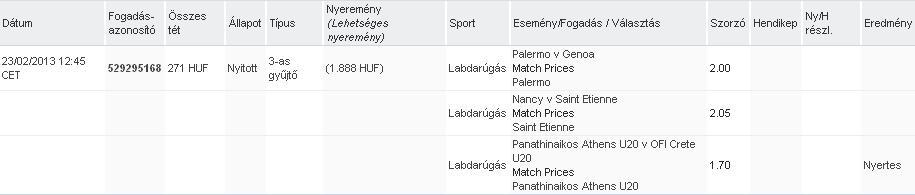 Jött a Lazio, Galata, Monaco 1.5 over is, erre nem írja , hogy won....
