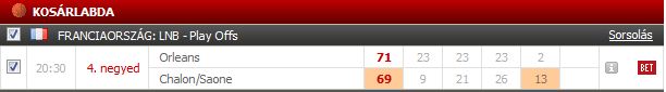 Várható nyeremény: 1650 FtOrléans eddig jól áll, törökök szintén, Besiktas meg nyert.