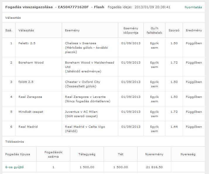 Várható nyeremény: 2715 FtIgazából a chelseatől nagyon félek, eddig 0 a meccs.