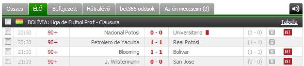 124 U20Chile - U20Bolívia H 1,40 ezzel mi van? vége már vagy most lesz vagy mi mert eredmenyek.com-on nem lelem, és a bet365-ön meg káosz megtalálni bármit is kereső hiányában. -