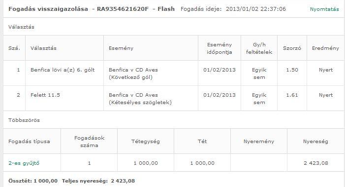 Nem az a szép, hanem hogy rakni akartam 5.20-ért hogy félidő D 1k-val, erre mikor kattintottam hirtelen elszürkült és gól.