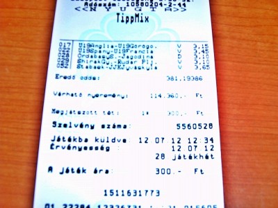 Ez tegnapi fotó reggel nejem váltotta ki de ő nincs itthon ha hazaér akkor természetesen lefotózóm a teljes szelvényt ha megőrizte,most aki nem hiszi el ez van