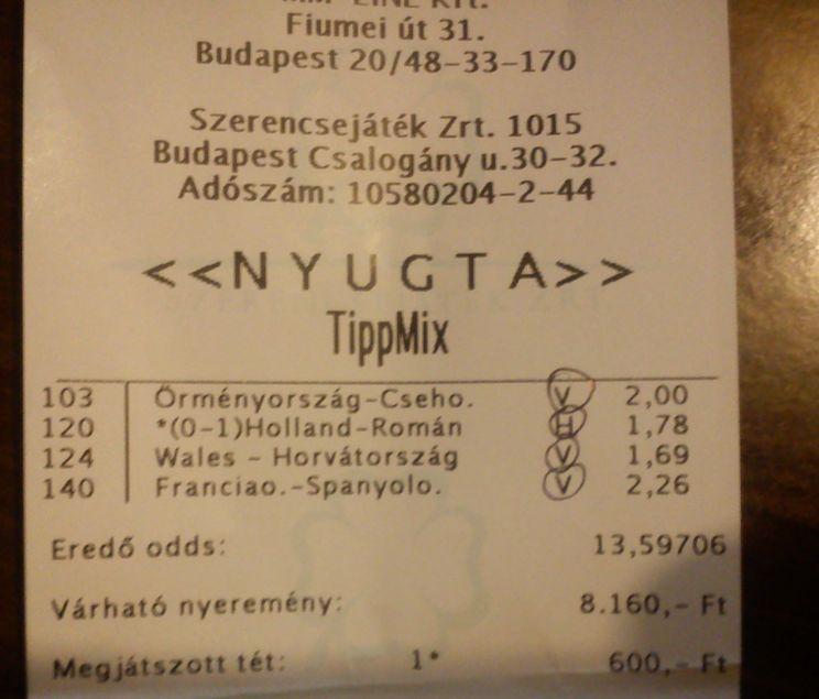 az én napi tippszelvényem, ha jól látom, ma még nem volt ilyen kombó :