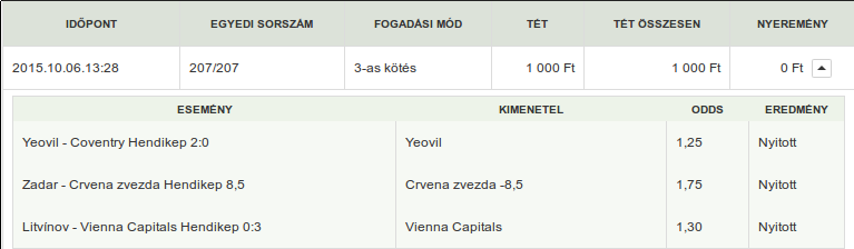 Oxford Utd. - Swindon Hendikep 2:0 Swindon 31,00 NyitottTét összesen 100 Ft