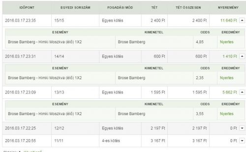 Utána néztem, jó lesz. Eddig még saját számlával nem fogadtam élőben (csak papíron), csak megkértem valami barátot, hogy gyorsan tegye már fel, mert elment a papír. Majd most kipróbálom.Egyébként a múlt hetem egész jónak bizonyult, a héten sajnos ez még nem mondható el. Bár eddig csak egy ezres mínusz, plusz a kaparósok