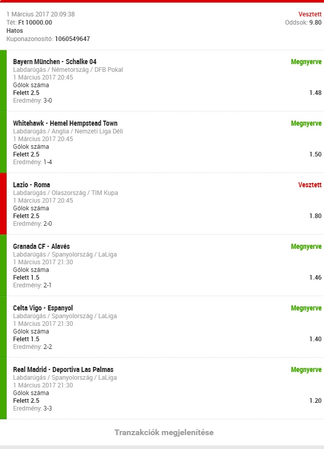 el se kezdtem, csak megjött a kedvem látva hogy jönnek a meccsek. A tegnapi napot nézve ha az overeket nézem elég szépek is voltak az eredmények csak pont belenyúltam az egyik rosszba. Visszatérek olvasó üzemmódba. Volt egy 3 éve már szerintem egy korszak mikor az asszonnyal mindennapos program volt a lottózóba járás, de nem sírom vissza azt a korszakot