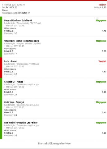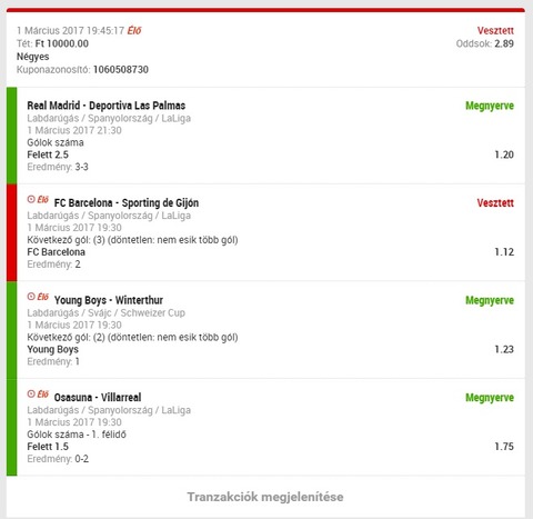 Mentem a lottózóba mondom megrakom a bars kazan meccset 30-èrt. 3.6os szorzón. Kb15 percen keresztül nem fogadta el a terminál... Már 3.3-ra csökkent az odds mikor mondtam hogy akkor hagyjuk. Kíváncsi vagyok hogy mi lesz a vège.