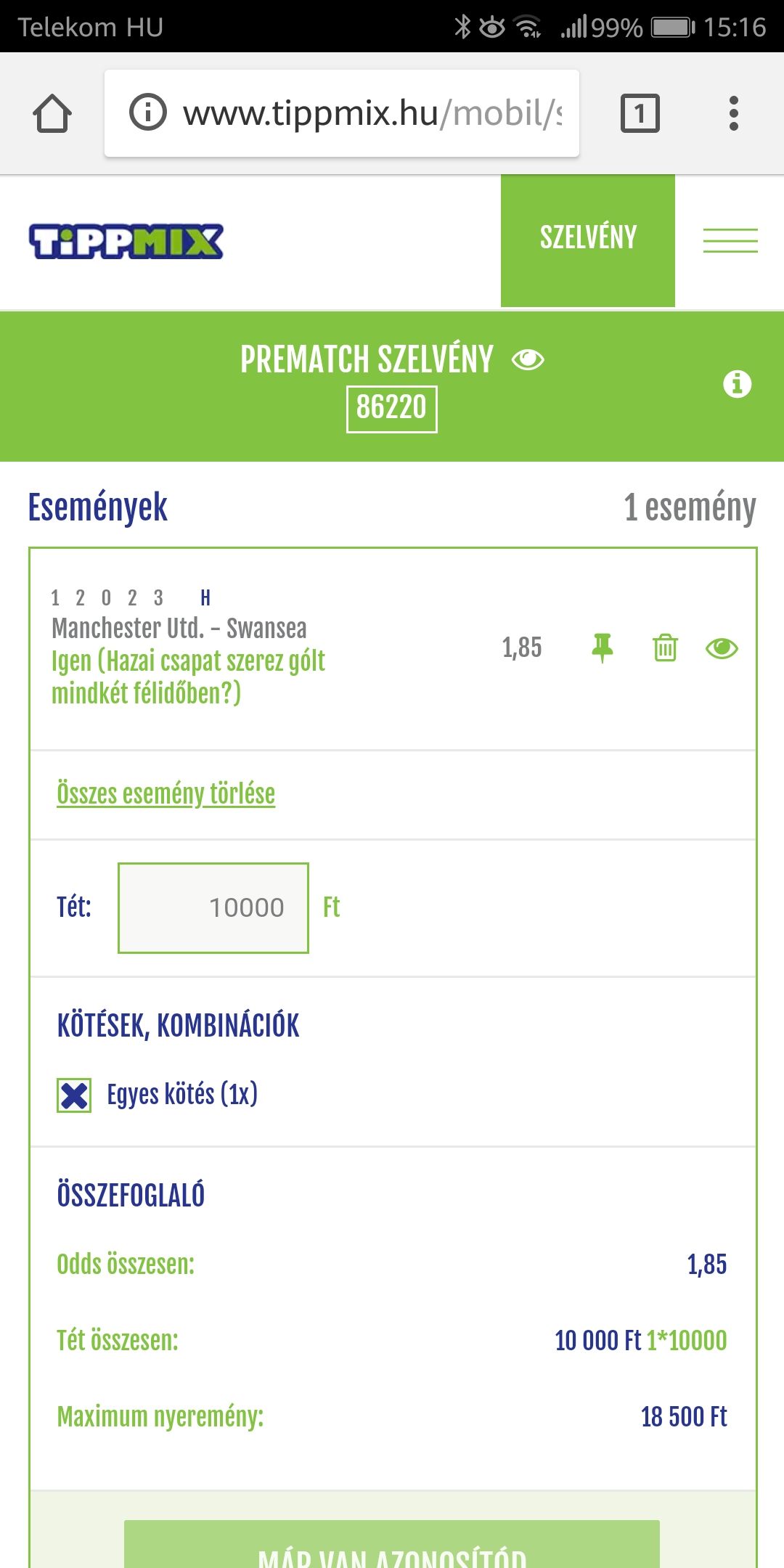 Tervezem visszaszedni az elbukott 10,5k-t... Valakinek esetleg tippe mára?