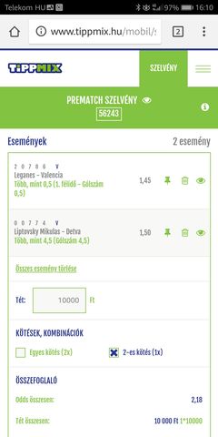 1. félidő 0,5 gól felett. 1.50 xSt. Pölten-Sturm Graz(Osztrák foci, szintén nemsokára kezdődik)