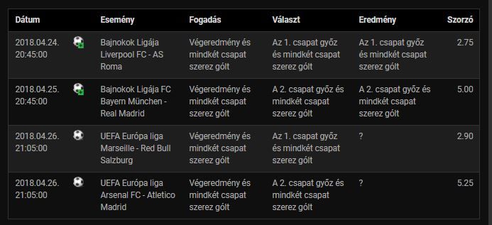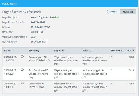 Most jelenleg egy olyan akció megy ha egy bizonyos összegben fogadsz kapsz egy ingyen fogadást.Mára ez megy "ingyen"