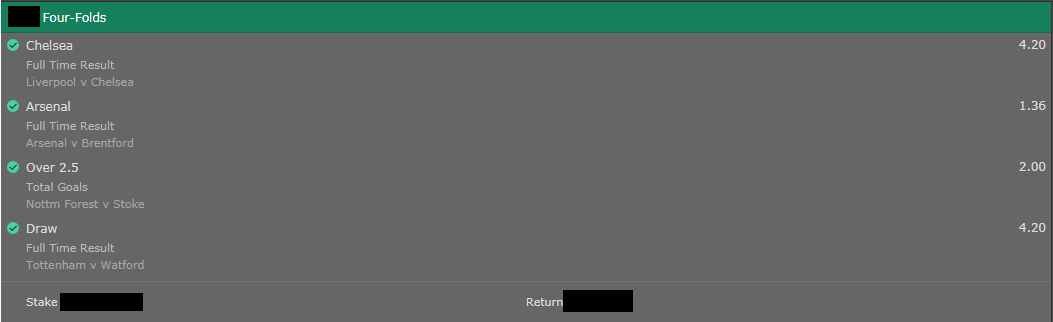 Végig néztem kb az összes eseményt arra a meccsre.Chelsea 2-3-4 gólos győzelmet várok 2-0 handivel is 1.7 asszem, ez tűnt a legjobb oddsnak. Olyan is van vidi nem rúg gólt 1.2-ér kb szóval szerintem ez a legjobb odds erre a meccsre. Nyilván mehetne nagy pénzel is a hendi Chelsea, de most nem akarok kockáztatni.