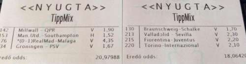 Van egy 5 hasábos totóm, 2 sorban eddig 5/5