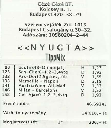 itt minden alacsony általában, mint a rendes tippmix szelón