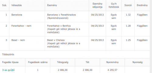 5/4--->500 ft--->2500 tehát az alaptét, ha mind jön akkor 17 ezer jöhet, ha a legnagyobb szorzójún megy el és a többi jön akkor is legrosszabb esetben visszakapom a 2500 at