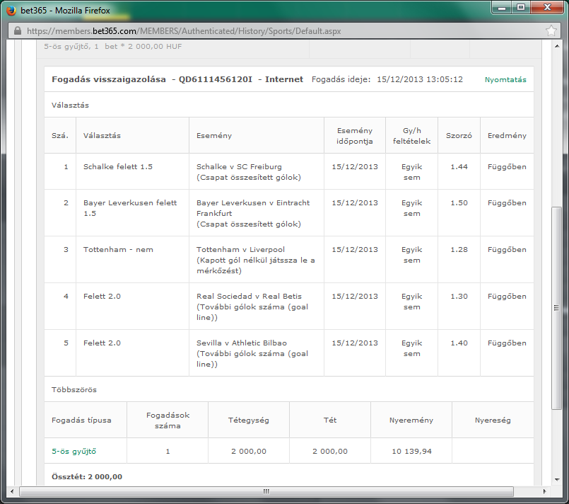 Egy Frankfurt X2-t eleresztettem 2k-val 1,95-ért.