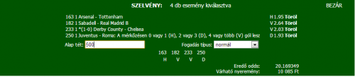 Egyértelmű, hogy a legkisebb odds szopat be.