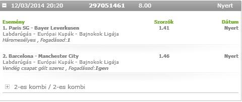 plusz még 2,5$- ~3$ amiatt hogy Neymar nem lőtt gólt