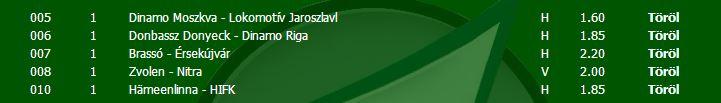Amíg megy a BL addig azokon a napokon teszek egy szelvényt, utána viszont vissza pihire, mert igazából nem is az elbukott pénz a baj, mert tudni kell veszteni emelt fővel, hanem az ideg amit megeszek már ezzel a folyamatos 1. viszi szériával.