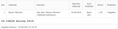 Ahogy az öreg bölcs emberek tanították, "Úriember biztosra nem fogad"! Én ma mégis udvariatlan voltam. Ma +1eFt-al zártam a mai BL meccseket. Sajnos 1eFt-vel megraktam a Barca-Bayern győzelmet.