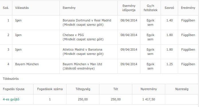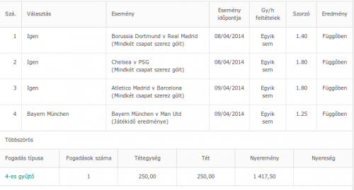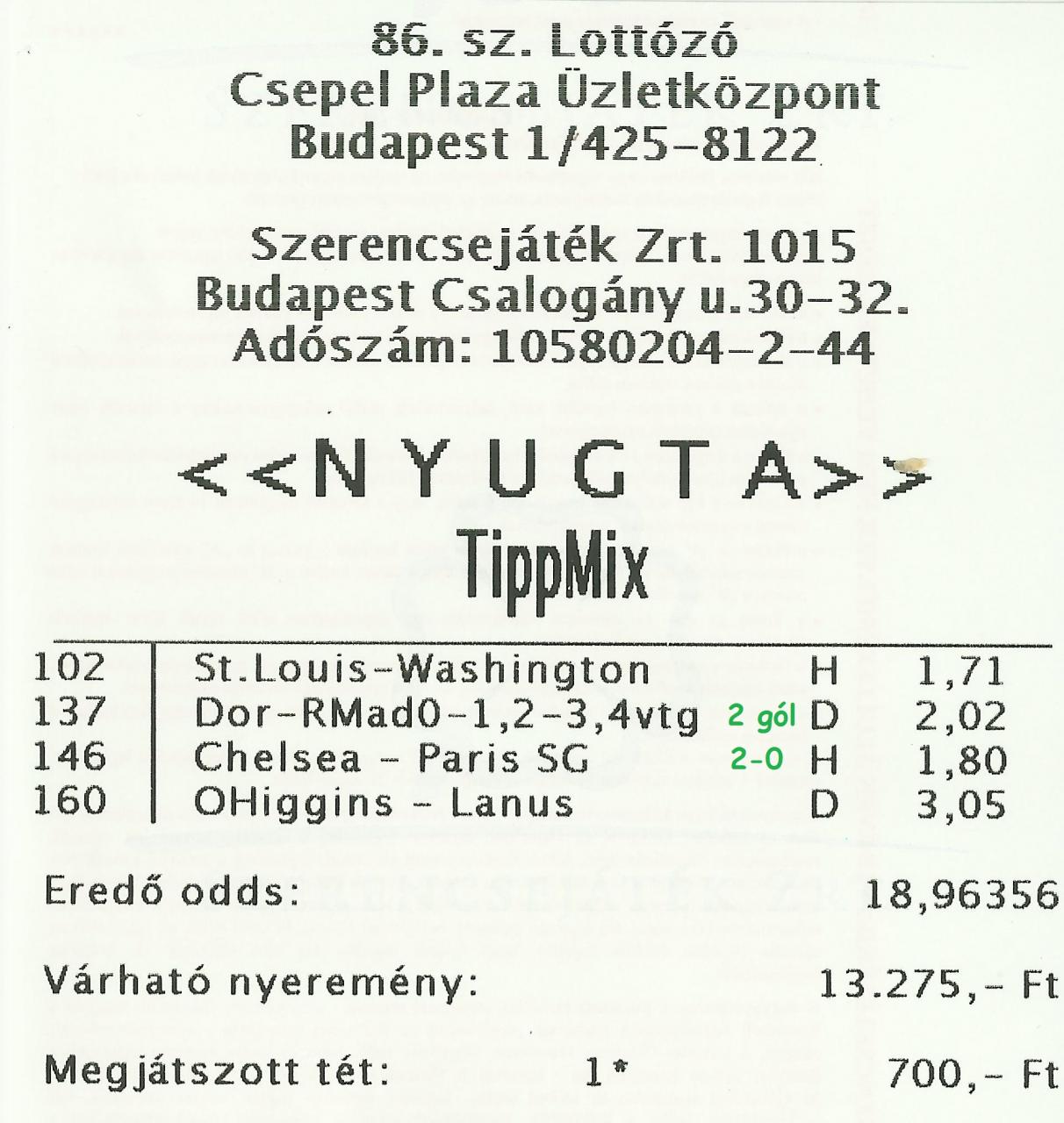 .Úgy látom a hét első felében nem nyerek, sebaj a második felére összerakok egy 40-es odds-ot és megrakom egy ezressel hátha beütne