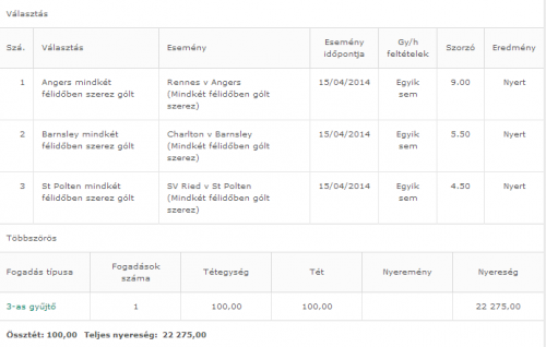 Ez igen, nagy gratula több mint 200 feletti oddsot fogni nagyon szép...